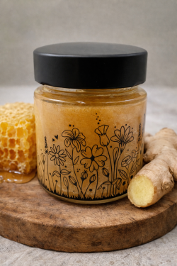 Dieser Honig mit Ingwer vereint die natürliche Süße feinsten Blütenhonigs mit der angenehm scharfen, leicht zitronigen Note von echtem Ingwer. Das Ergebnis ist ein ausgewogenes Geschmackserlebnis: zuerst mild und süß, dann wärmend und pikant im Abgang.