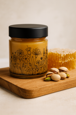 Hergestellt aus sorgfältig ausgewählten Pistazien und hochwertigem Honig, ist dieses Produkt ein echter Genuss für Feinschmecker. Ob als Topping für Joghurt, Müsli und Desserts, zum Verfeinern von Käseplatten oder einfach pur gelöffelt – Pistazien in Honig sind vielseitig einsetzbar und immer ein Highlight.